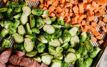 Roasted Winter Veggies with Chicken-Apple Sausage and Bacon from Sunshine