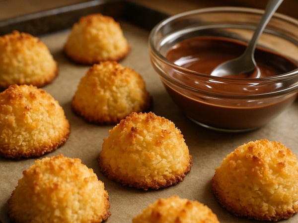 Warm your oven to 350°F (175°C) and lining a couple of baking sheets with parchment paper. In a big bowl, mix together the coconut, flour, and sea salt. Then pour in the coconut milk, honey, and vanilla extract, stirring everything until it’s well combined. Use a tablespoon to scoop the mixture onto your prepared sheets, spacing them out a bit. Pop the trays in the oven and bake until the bottoms turn golden and the tops just start to brown—this usually takes about 20 minutes. Let the macaroons cool on the sheets for five minutes before moving them to a wire rack to finish cooling completely, which should take around 20 more minutes. While they cool, melt your chocolate chips in a microwave-safe bowl, heating in 15-second bursts and stirring in between until smooth. Finally, dip either the top or bottom of each macaroon into the melted chocolate, letting any extra drip off, then set them on waxed paper until the chocolate firms up, about 10 minutes.
