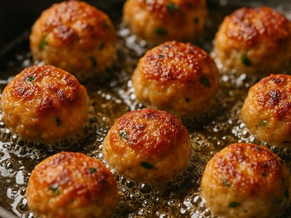 - Don’t overcrowd the pan when frying to keep the meatballs crispy.