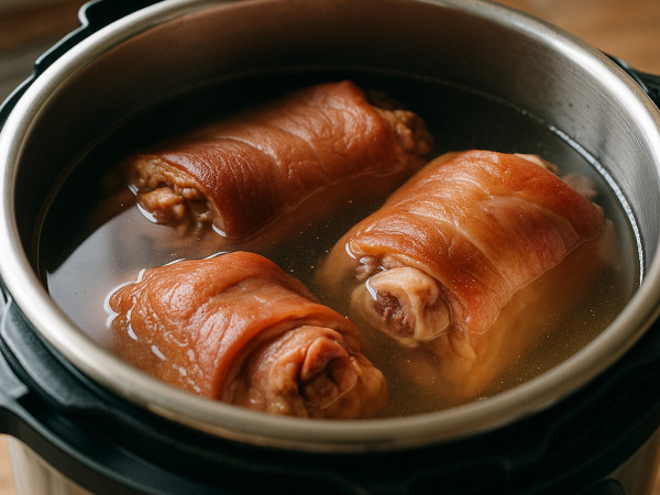 Place the ham shanks and water in your pressure cooker. Lock the lid in place and bring it up to 15 pounds of pressure over medium heat. Once it reaches pressure, lower the heat and let it cook for about 20 minutes. When the time’s up, carefully release the pressure following your cooker’s instructions. Take out the ham shanks with a slotted spoon and set them aside to cool. While they cool, strain the broth into a bowl and save it for later.