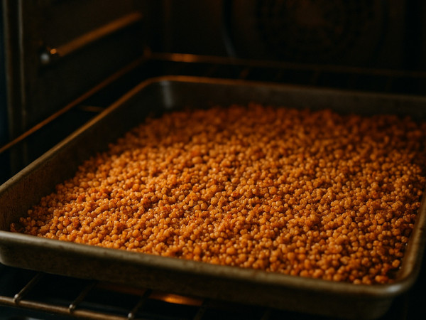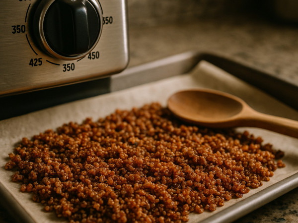 Spread the quinoa mixture evenly on your prepared baking sheet. Pop it in the oven and bake for 15 minutes, then give it a good stir. Keep baking for another 5 to 15 minutes, stirring occasionally, until the quinoa dries out and gets nice and crispy.