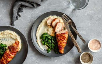 Cauliflower Rice with Herbs, Pecans, and Bacon-Wrapped Chicken