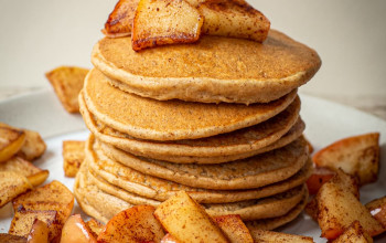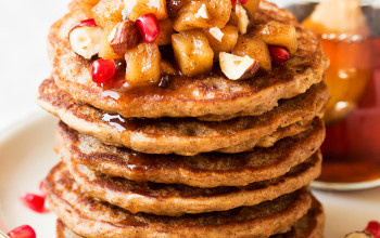 Apple Maple Sauce Topped Oatmeal Pancakes