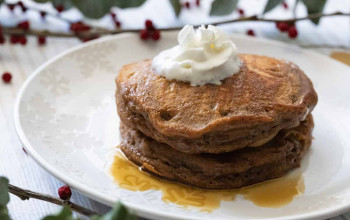 Gingerbread Pancakes Drizzled with Warm Lemon Sauce