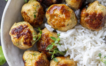 Turkey and Zucchini Meatballs with a Roasted Pepper Dip