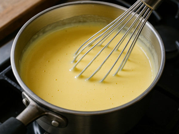 Whisk the sauce mix and milk together in a saucepan over medium-low heat. Add the butter and bring the mixture to a gentle boil, stirring until everything is melted and smooth. Lower the heat and let it simmer for about a minute, stirring now and then, until it thickens up a bit. Set the sauce aside to cool down slightly.
