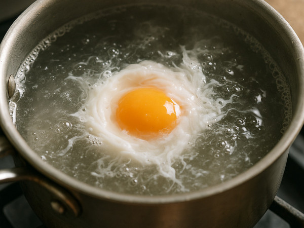 Heat a couple of inches of water in a small saucepan until it’s boiling, then add a splash of vinegar and turn the heat down so the water is just simmering gently. Crack your egg into a small cup or ramekin, then carefully slide it into the simmering water. Let it poach for about 3 to 4 minutes, until the whites are set but the yolk is still a little runny. Use a slotted spoon to lift the egg out and place it on a paper towel to drain. Season with salt and pepper.