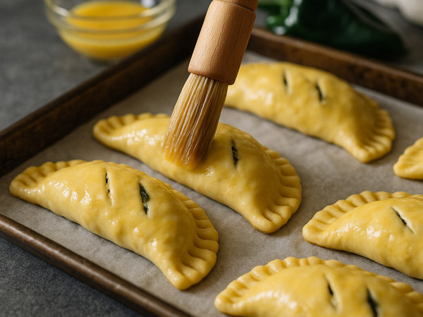 Place your empanadas on the baking sheet, brush the tops with a beaten egg for a lovely golden finish, and bake for 24 to 26 minutes until they’re beautifully browned. Let them cool just a bit before digging in!