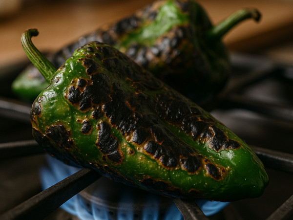 Gently heat your oven to 375°F (190°C) and lining a baking sheet with parchment paper. To prepare the poblanos, place them directly on the gas stove grates over medium heat. Turn them occasionally with tongs until the skin is nicely blackened and charred, which should take about 5 minutes. Once they're done, pop them into a sealed plastic bag and let them steam for 7 to 8 minutes—it makes peeling a breeze. After they’ve cooled, peel off the skins, remove the seeds, and chop the flesh into roughly 1-inch pieces.
