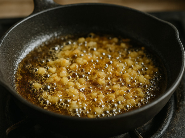 Combine the oil and garlic in a small pan over medium heat. Let the garlic cook until it smells really fragrant, about 2 minutes. Then lower the heat, stir in the brown sugar, and keep stirring until it turns into a smooth sauce, which should take around 3 minutes.