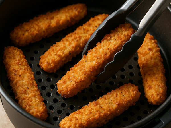 - Lightly spray the tenders with oil to achieve extra crispiness.