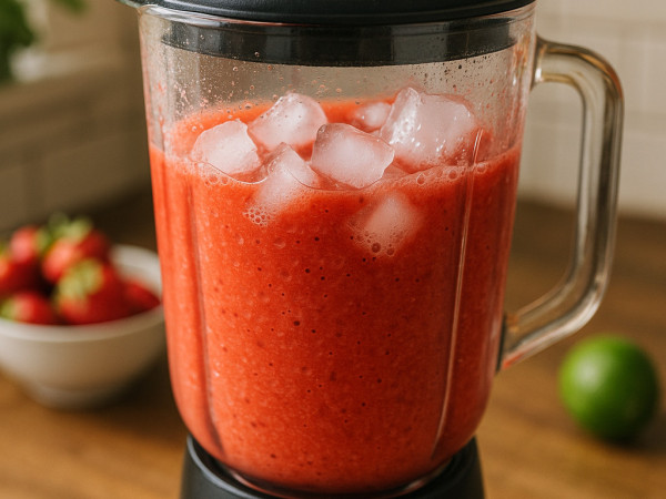 Tos the water, sugar, lime juice, and strawberry jam into a blender. Blend everything on high for about 30 seconds until it’s smooth and well mixed. Then, add some ice cubes to the blender and give it another good blend for about 30 seconds or until the ice is crushed and the drink is nice and frosty. Pour it into glasses and enjoy!