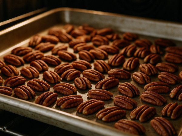 Heat your oven to 350°F. Spread the pecans out in a single layer on a baking sheet and toast them in the oven for about 6 to 8 minutes, giving them a stir halfway through so they brown evenly. Once toasted and smelling amazing, let them cool completely, which should take around 20 minutes.