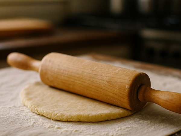Sprinkle plenty of flour over a pastry cloth, your rolling pin, and four sheets of waxed paper. Roll each dough ball out on the floured cloth until it’s about 1/8 to 1/4 inch thick. Let the dough rest for 45 minutes, then carefully flip each piece (it might be a bit tricky because it will be stiff) and let them sit for another 45 minutes.