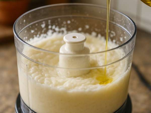 - Slowly drizzle the oil while blending to help the sauce emulsify properly.