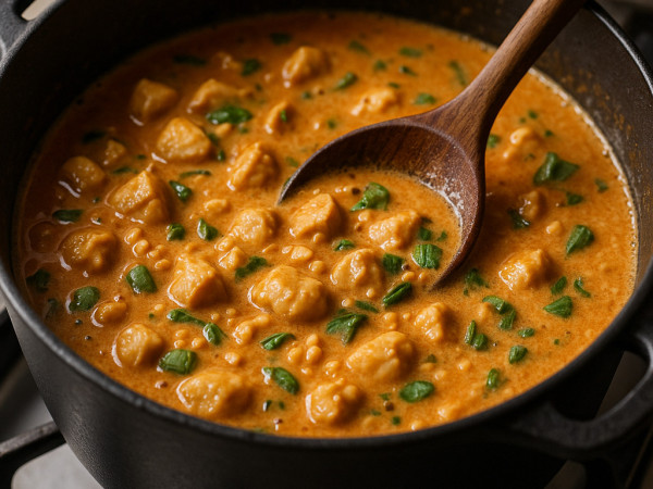 Turn the heat down to low, then stir in the remaining coconut milk and brown sugar. Let it simmer gently until the sauce reaches your preferred thickness, which will take another 10 to 15 minutes. Taste as you go and add more peanut butter if you want it richer or creamier.