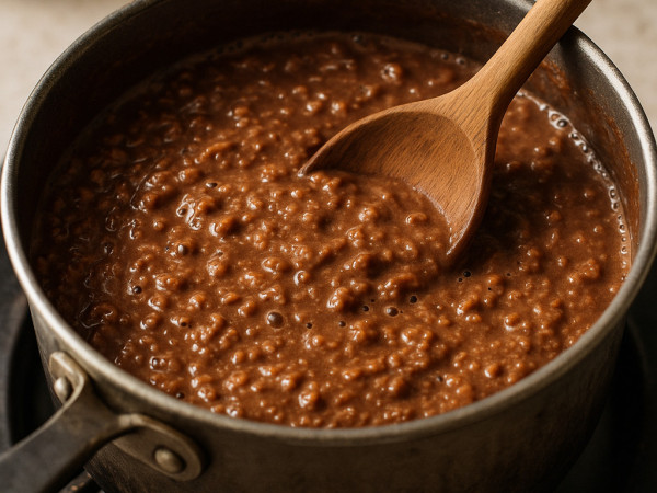 Pour the cashew milk into a saucepan and heating it over medium-high until it just begins to boil. Once it’s bubbling, stir in the oats and turn the heat down to low so it simmers gently. Mix in the cocoa powder, a pinch of salt, and some cinnamon, stirring everything together until it’s well blended. Add a drizzle of maple syrup to sweeten it up. Let the oatmeal cook for about 5 minutes, stirring occasionally. Then toss in the chocolate chips and stir until they melt and the oatmeal thickens to your liking, which should take another minute or two. Scoop it into a bowl and top with sliced banana before digging in.