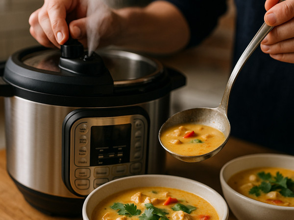 Once the cooking is done, release the pressure slowly using the natural release method—this usually takes around 10 minutes. After that, carefully switch to the quick release to let out any remaining pressure, which should take about 5 minutes. When it’s safe to open, remove the lid and ladle the soup into bowls. Finish each serving with a sprinkle of fresh cilantro for a bright, fresh touch. Enjoy!