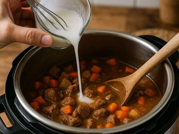 If your stew feels a little thin, mix some water with cornstarch and stir it in. Then, cook it on manual for 5 more minutes and do a quick release one last time. Your stew should be nice and thick, ready to enjoy!