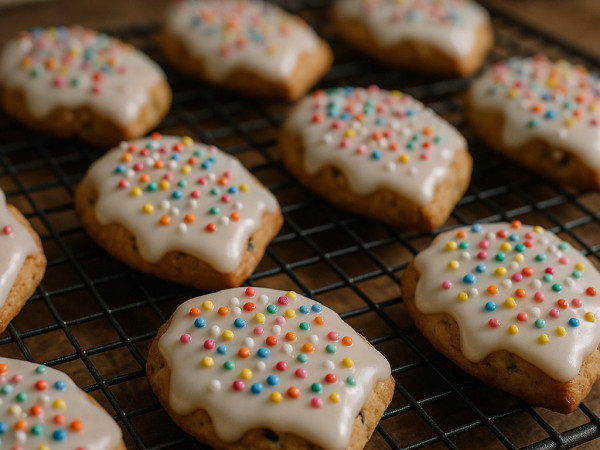 Bake the cookies in batches for about 15 to 20 minutes, until the edges turn golden. Once they’re out of the oven, let them cool for 15 to 20 minutes. While they cool, mix powdered sugar with a bit of milk to make a simple glaze. Spread this over the cookies and sprinkle on some decorations if you like.
