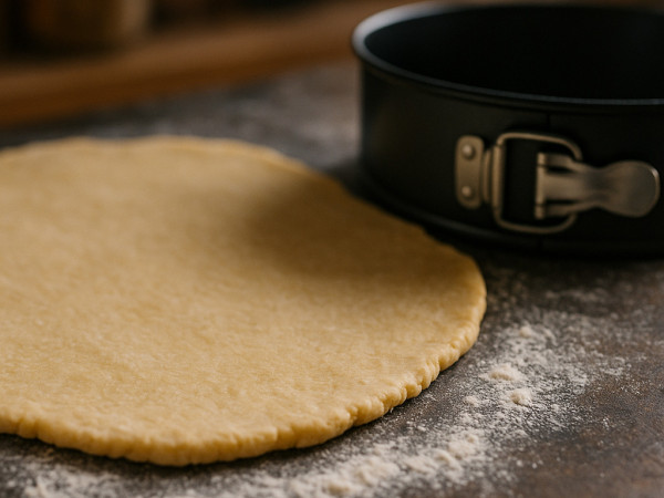 Lightly flour your work surface and knead the dough for a couple of minutes. Roll out about three-quarters of it into a circle roughly a third of an inch thick, big enough to line a 10-inch springform pan with the dough pressed up the sides. Roll out the remaining dough into a similar-sized circle to use as the pie top. Pop both pieces in the freezer for about 10 minutes to firm up.