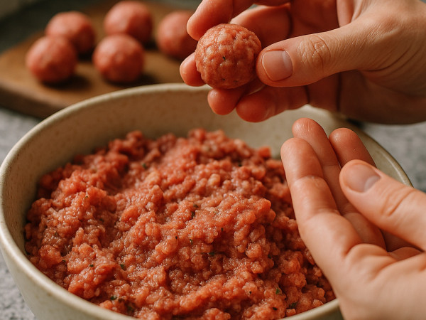 In a bowl, combine the beef, pork, chopped onion, and parsley. Season generously with salt and a bit of black pepper, then roll the mixture into small meatballs.