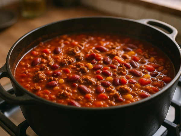 - Let the chili simmer low and slow to allow the spices to meld together.